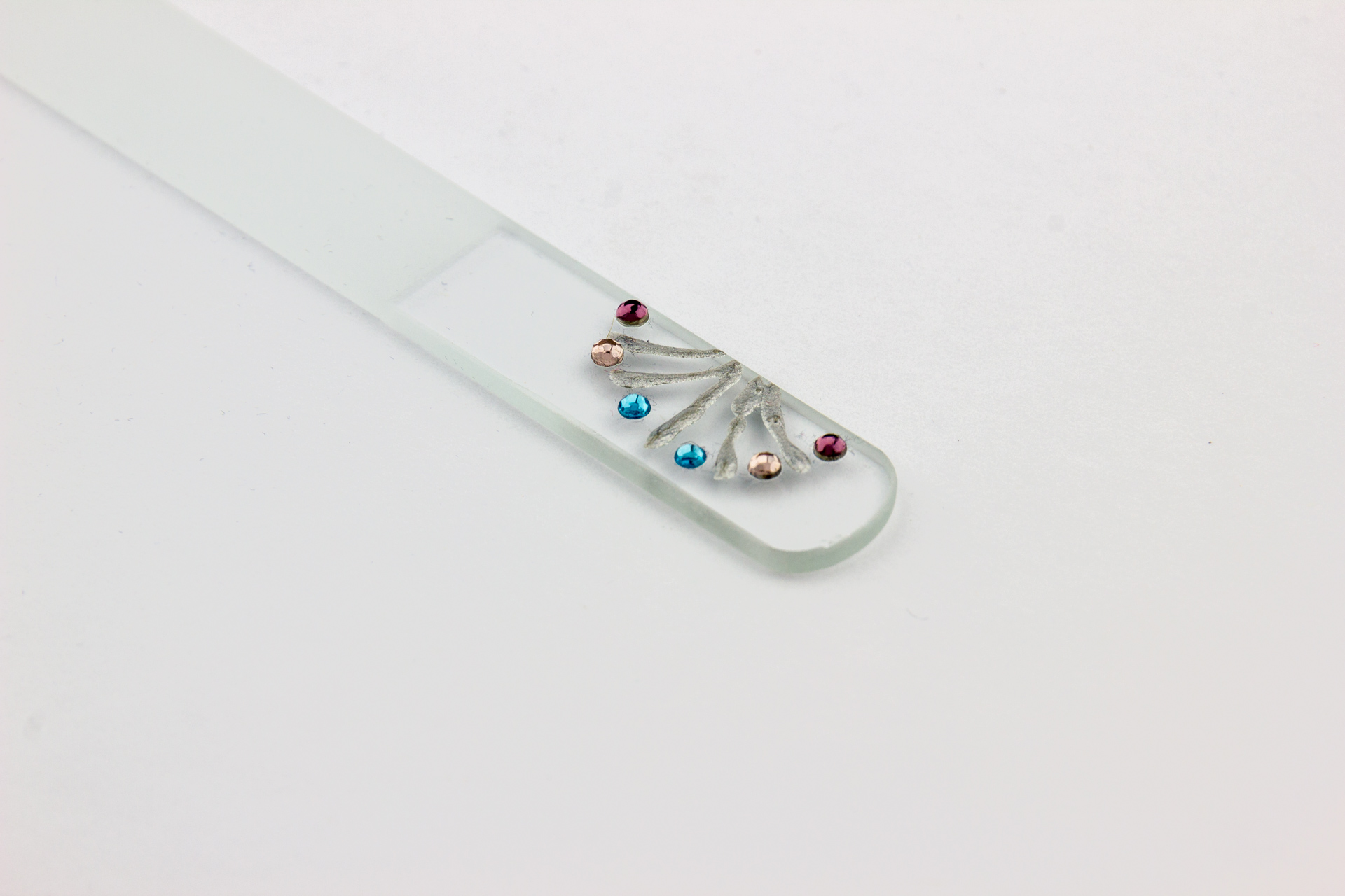 Skleněný pilník na nehty s kamínky a ručním malováním, 135mm/2mm