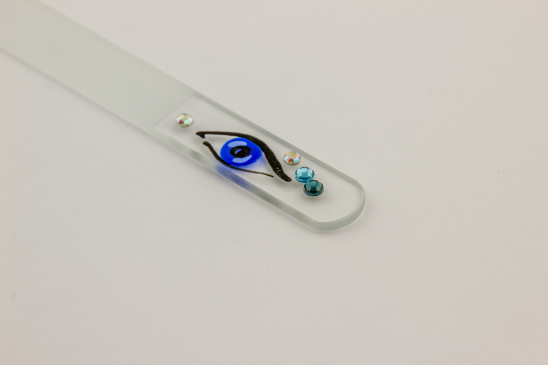 Skleněný pilník na nehty s ručním malováním a kamínky,135mm/2mm